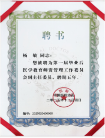 近日,遵义医科大学附属医院杨敏教授获聘为中国医师协会毕业后医学教育师资管理工作委员会副主任委员,是贵州省唯一获聘人选,这标志着杨敏教授在毕业后医学教育领域的专业水平和影响力获得国家级行业组织的认可。
