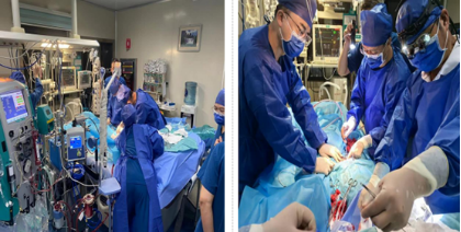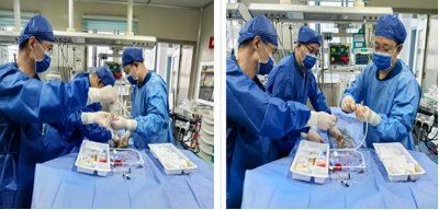 10月15日,33岁的杨女士因“妊娠39周、胸闷气促3月”在铜仁市人民医院产科待产,行心脏彩超提示肺动脉高压重度(肺动脉压102mmHg)、三尖瓣重度反流,急诊行剖宫产手术。术后两天胸闷气促加重、出现呼吸困难、血氧饱和度不能维持、循环衰竭转入铜仁市人民医院重症医学科紧急予以气管插管、有创呼吸支持、升压药维持血压等抢救治疗,病情无好转,为进一步抢救治疗,19日转入遵医附院急诊科,立即开通绿色通道,急诊收入重症医学科抢救治疗,病程中反复出现室性早搏,大剂量升压药维持血压,仍不能维持正常,伴意识障碍,刺痛无反应,四肢冰凉发绀,存在高乳酸血症。重症彩超提示,心脏短轴明显D字征、LVEF30%、VIS评分45分,考虑存在“急性肺源性心脏病(失代偿)、心源性休克、梗阻性休克(室间隔左移压迫左室)、重症肺炎并急性呼吸衰竭、脓毒性休克”、生命岌岌可危,科主任付豹及副主任陈涛迅速评估病情,立即组织科室ECMO团队讨论、有急诊行VA-ECMO心肺辅助支持指征。