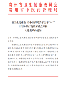 近日,贵州省卫生健康委员会、贵州省中医药管理局联合公布“942”计划分级打造临床重点专科入选名单,遵义医科大学附属医院凭借深厚的学科积淀、强劲的技术实力和卓越的诊疗水平,斩获多项殊荣——烧伤整形外科、麻醉科成功入选“登峰计划”,跻身国内先进水平;神经内科、呼吸与危重症医学科、胸心血管外科实力入选“攀峰计划”,冲刺西南地区先进水平,彰显医院在核心临床专科建设领域的硬核实力与领先地位。