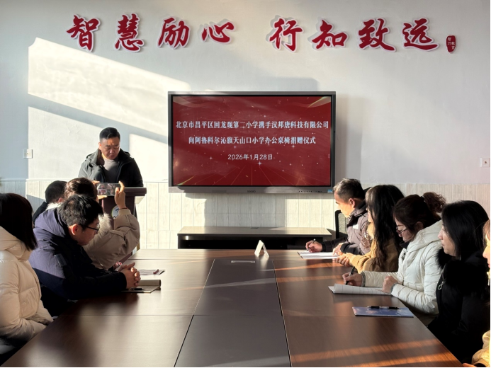 2026年1月28日,为了深化京蒙两地的教育交流与合作,共同提高边远地区的教育水平,北京市昌平区回龙观第二小学与汉邦唐科技有限公司携手,向内蒙古自治区赤峰市阿鲁科尔沁旗天山口小学捐赠了41套崭新的办公桌椅。这一慷慨之举,不仅致力于改善天山口小学的校园设施,更深刻地反映了京蒙两地间深厚的互助精神。