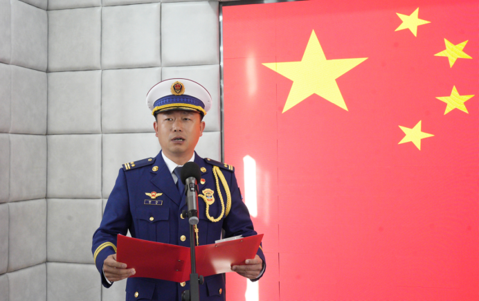 会上,王世利支队长宣布干部任职命令,孔特特副支队长宣布部分干部代职的通知和明确公务员领导职务层次的通知,徐岩政委主持并从“强化政治认同、快速进入角色、凝聚团结合力”三个方面作了要求。随后,举行宪法宣誓仪式,徐岩政委监誓,王世利支队长领誓,郭强组长主持,全体宣誓人员面向国旗国徽高举右拳,郑重宣誓:“我宣誓:忠于中华人民共和国宪法……”,铿锵有力的誓词回荡在每名干部的心间。