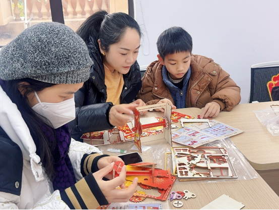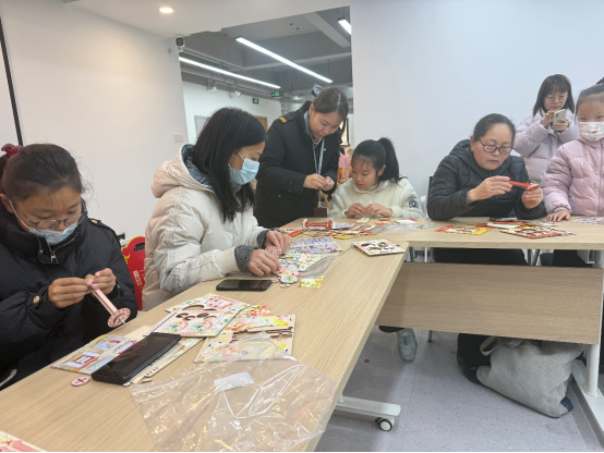 活动现场暖意融融、年味十足。手工台历DIY环节备受居民欢迎,地铁工作人员提前准备了空白台历底座、彩笔、新春贴纸、剪纸以及安全出行标语卡片,现场耐心指导老年居民与亲子家庭动手创作。大家将新春美好祝福、地铁安全小贴士、便民服务信息逐一绘写、粘贴在台历上,一笔一画饱含心意。亲子家庭协作创作其乐融融,老年居民在工作人员的协助下完成专属台历,让每一本成品既实用又具纪念意义,更融入了出行科普知识。