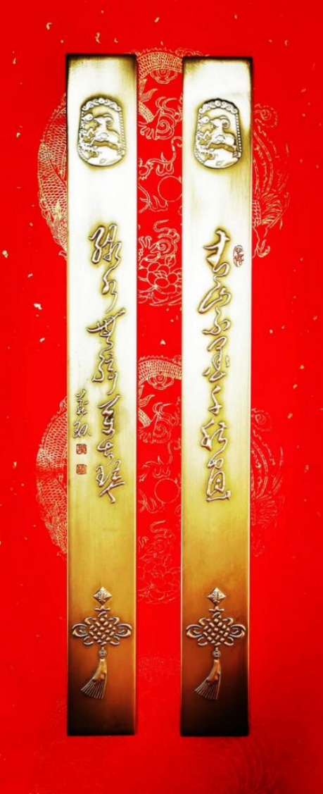 喻中国书法是以文字符号显形的无声乐章,撰:“神韵书画品当高,傲骨松梅格自华”,与书画道友共勉;撰:“吾心悟道德为本,此书画神韵是根”,以明书道心德。