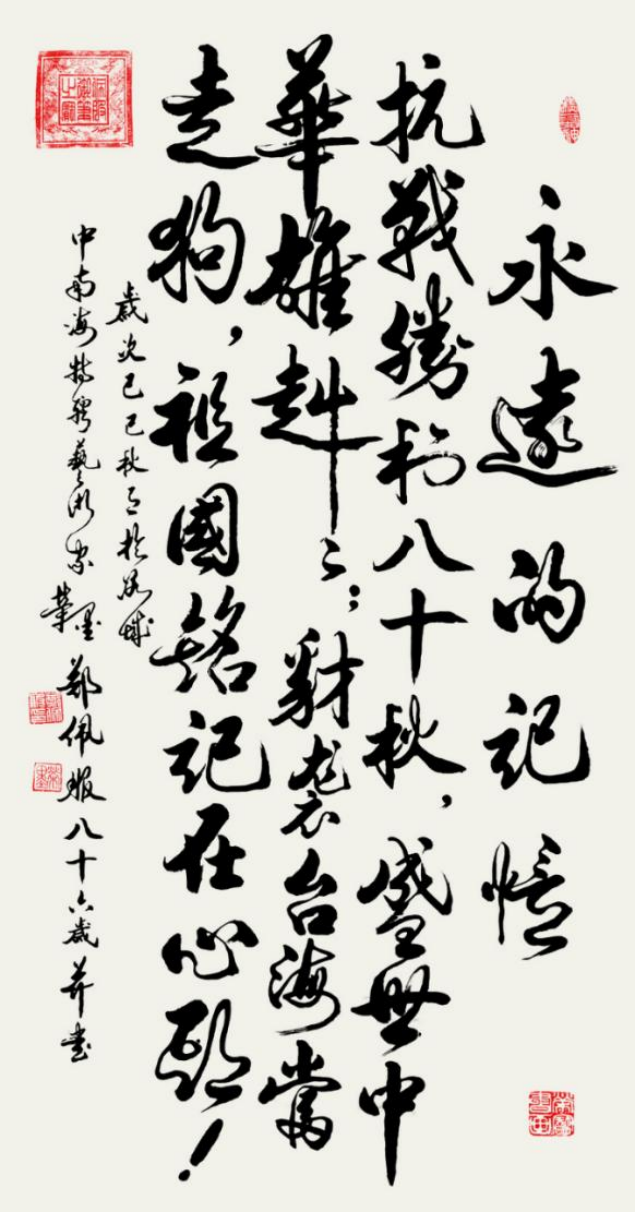 代表作品辑入《中国历代书画名家精品选集》、《中国书法全集》、《中国书法美术选集》、《东方红》、《中华国礼艺术大师》、《中国五大名家》、《大国大家》、《一代师表》、《国之巨匠》、《中国艺术十大巨头人物》、《中国艺术界大拿》、《影响亚洲十位顶级艺术大师》、《大国担当》、喜迎党的二十大《艺术家风采》、建国七十五周年《至高荣誉》、《祖国娇子》及建党百年珍邮、北京奥运珍邮、建军95周年、党的二十大珍邮等多部国礼珍藏册,2016-2025年国礼挂历及《世界典藏》长卷均见首页或封面、封底人物、《世界艺术领袖风采》长卷见首页等200余部典籍。
