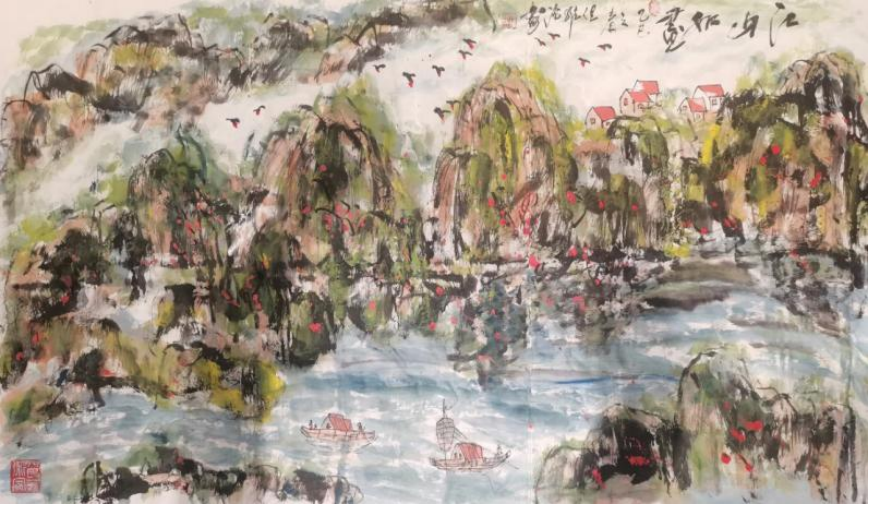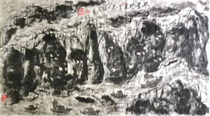 但维德老师作为国内首屈一指的诗人、作家、书法家、画家,国家一级美术师,其书画作品却散发着浓厚的文人画气息,画中蕴含诗意,诗中饱含画境,真正实现了诗、书、画三者的完美融合。细观但维德老师的书画作品,堪称中国传统艺术的璀璨明珠,它们不仅展示了但老师卓越的艺术才华,更流露出一种深沉的文化底蕴和人文精神。每一幅山水画,都仿佛是但老师心灵深处的写照,那峰峦叠嶂、溪流潺潺之间,蕴藏着但老师对自然的崇敬与挚爱,以及对生命哲理的深刻领悟。在这些山水画中,但维德老师巧妙地运用墨色与线条,描绘出一幅幅生动且层次分明的画面。远山近水,相得益彰,既有磅礴大气的格局,又不失细腻柔美的情致。