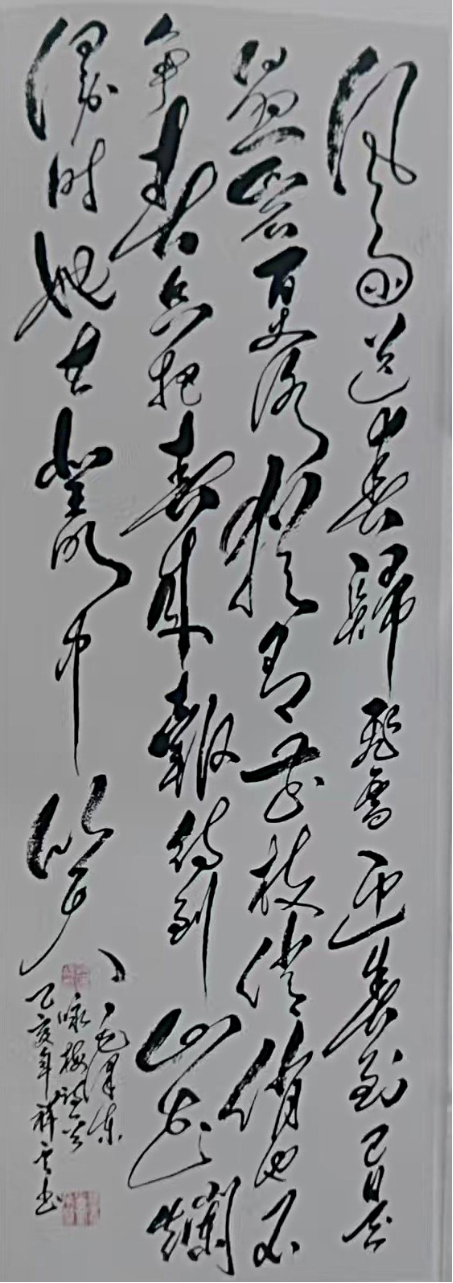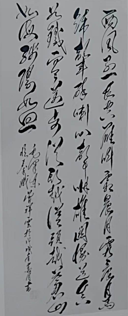 曾祥云的毛体书法时刻表现着伟人的博大胸襟,阳刚气质其书法取法颠张狂素,有二者的“颠”和“狂”的特质,再加上他本人对伟人领袖气魄与胸襟的崇敬,使他的书法表现出汪洋肆与恢宏气度,充满着他对革命现实主义的讴歌和浪漫主义的胆魄和豪情,书写的线条气势撩人。其书作以潇洒飘逸为主导风格龙飞凤舞的线条处理,急飞与直露并施,内涵强劲的力度和磅礴的气势,但绝对不是一种过度的张扬,书法大气磅礴,酣畅豪放雄奇壮美,展现一种气势和力量之美。这种美的精神究其源为儒家的“壮美”精神。书法讲求骨法,线条的阳刚之美集中体现在线条的“骨”“力”“势”。其书用笔的斩截、直露皆可造就此审美境界。在书作《沁园春·雪》中,在词的上阕展现了一幅辽阔万里的冬景图,引发对国家命运由谁来主宰的深思远虑,表现出了一代青年热爱祖国的情怀和崇高的政治使命感,下阕主要表达为美好的理想而英勇奋斗的精神。书作行草兼施,用笔藏露、提按、方圆并用,刚劲与柔和兼具,用墨较浓,字字牵丝连带,结构上撇画舒展,扬左抑右,章法处理疏密得当,通篇连绵通畅此词无论是在词的风格或是书写的风格上都是气势宏伟的,风格雄浑大气磅礴。在书作《七律·长征》中,用笔线条洒脱自然,活泼流转,忽重忽轻,力透纸背,纵横恢廓,结体欹侧与平正并重,章法上,在大小、轻重、粗细的对立因素之间,能够统筹全篇,纵横自如显潇洒,雄强恣肆展豪放,是曾祥云雄劲、消散洒脱书风的代表。曾祥云的毛体书法在古典精神的韵律之下有所创新发展,具有极强的审美价值。