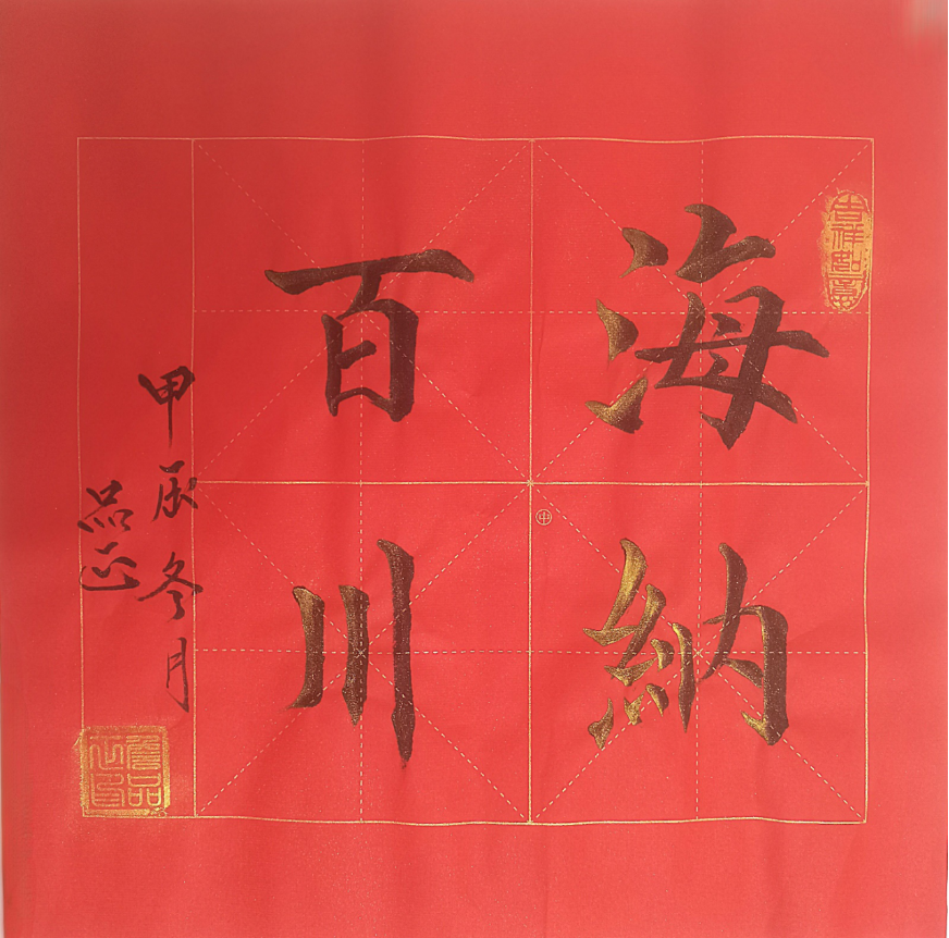 2024年作为中国文化艺术代言人,书法作品荣登北京机场展播。