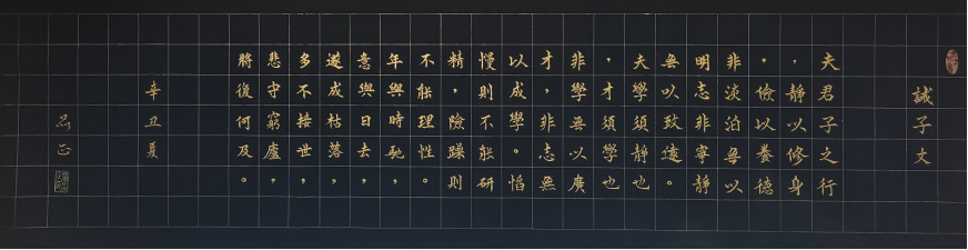 高贵时代真正耀眼的皇冠,成为人类永远的光荣和自豪。博大精深的中国书法艺术是我们的光荣与自豪。詹品正秉持书法灿烂美好的信念,作为理性、良知代表的文人,他过去坚持,现在坚持,将来也必然坚持书法文化的传承与推广。詹品正的小楷作品用乌丝格形式,界格呈方,字距、行距偏大,字字独立,规整明朗,精致考究。通篇行云流水,用笔圆劲遒媚,平和俊朗,字里行间气息比较连贯,笔画转折处爽利秀劲,细观有浑厚静穆之气。詹品正楷书作品的笔墨情趣和点画形态下,将他个人的精神追求和艺术修养定格下来。楷书创作是詹品正精神世界的特殊承载,这对于丰富当今书法创作具有重要意义。
