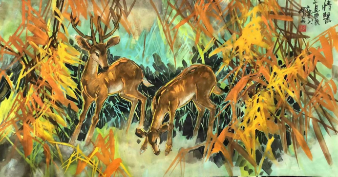 凤林教授是我多年的朋友,其早年在西安美术学院学习并受到学院派扎实的基本功训练。回到家乡后更多的是继续在大学里的艺术学院教书,同时在地方兼任了美术家协会主席。也充中分见证了其在地方艺术的学术水准,他的作品在不断的追求中不仅传承了学院派中传统意义上的严谨造型,也更多受到当地人文及南方灵秀山水环境的影响,在吸收当代艺术表现张力的同时。更重视地域文化对作品的渗透,所创作的作品中不难看出,所透出着浓浓的传统中的现代感,现代中的传统理念。即有吸收传统的精髓。又不失笔墨当随时代的艺术追求,特别是对其家乡山清水秀的青绿山水表现手法又有了色彩上的大胆创新。极具现化人的视觉审美需求,华丽而不艳俗,大气而不沉重。有笔墨又兼具丰富的色彩表现。具备了一种雅俗共赏的公众所认可的艺术效果。个人风格与艺术追求突显。祝愿风林教授继续坚持创新、走自己的艺术追求之路上更上一层楼。