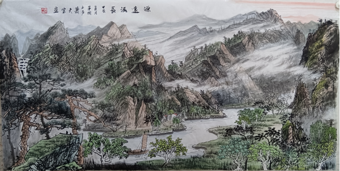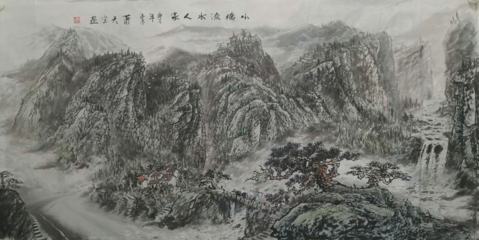 在当今中国画坛内,萧天宝先生既是一位纯粹的写意追求者,同时也是一位鲜有的精神弘道者。自耕耘艺海以来,先生始终如一,在笔墨上恪守了传统笔墨的文脉精髓,在画道上则充分延续了中国文人画“载道”的内核追求。尤其是在画坛风云变幻之际,萧天宝先生也是能立定精神,并以极其清醒的艺术自觉,构建起独具品格的山水风范。每一幅画作,都是实现了自然之道与心灵境界的双重叩问。而这种由“味象”臻于“写心”的艺术蜕变,也正是其技道并进、参悟画理真谛的明证,较于时下浮华者,实有霄壤之别!但凡山水画作,无不是贵乎天然气象,一旦刻意矫饰,则必流于匠俗气。而作为当代山水画名家,萧天宝先生笔下的山水就是自有一番天趣,是谓贯想山林真面目而流露于毫端也!在写意上,萧天宝先生自觉回归于古意,让每一幅山水画,都能成为心灵抒怀的归宿,而画中一切的山水意象,也都是源于萧天宝先生心灵与写生的双重构建。所以看他的山水画,每一幅都是气味荒寒,每一处也都是苍茫峻嶒,观之,实有一种“行到水穷处,坐看云起时”的诗韵奇趣。在画法上,萧天宝先生对“画必南宗”的取法真诠也是自有领会,尤其对宋元文人画精髓的承继最为显著。看其笔墨立意,是融工笔之精微与写意之洒脱于一炉,画面中巉岩峭壁、怒石横矶,皆以钩斫摺带等传统皴法精心构筑,既得古人法度,又见自家面貌。观其满幅经营,恍若参与天地鸿蒙之初的开辟:千峰竞秀间怒江奔涌,万壑争流处怪石嶙峋。通幅宏观纵览则见稠山密麓,细品妙处又见柳荫长堤、津渡弥弥。更有点睛之笔,如贾客扬帆,于烟波渺茫处化作淡淡遥影,令观者顿生“咫尺千里”的旷然之思!画中妙意,可游可居!清峡浮烟处,逍遥一砚中。在现代化文明的洪流裹挟下,人类精神正经历着前所未有的理性化进程,刻板思维也如同无形枷锁,禁锢着心灵的跃动。但艺术的存在,就是为了守护人性中最珍贵的感性维度——人终究不是机器,内心深处的情感境界可以被蒙蔽,但却永远不会消失。而萧天宝先生的画作,实际就是对这种精神困局的一种强烈回应。当浮华散尽,铅华褪去,萧天宝先生以一颗澄明如镜之心,终得艺术真谛的觉醒。笔墨褪尽火气而归于平淡,身心超然物外而游于林泉。及至运思挥毫时,他已悄然完成了“见山是山,见水是水”的本真彻悟……