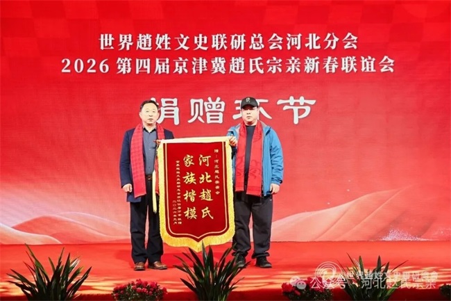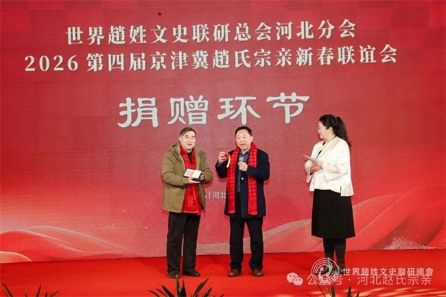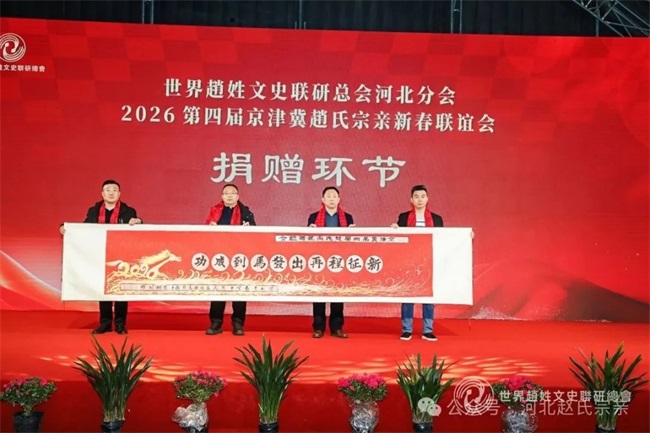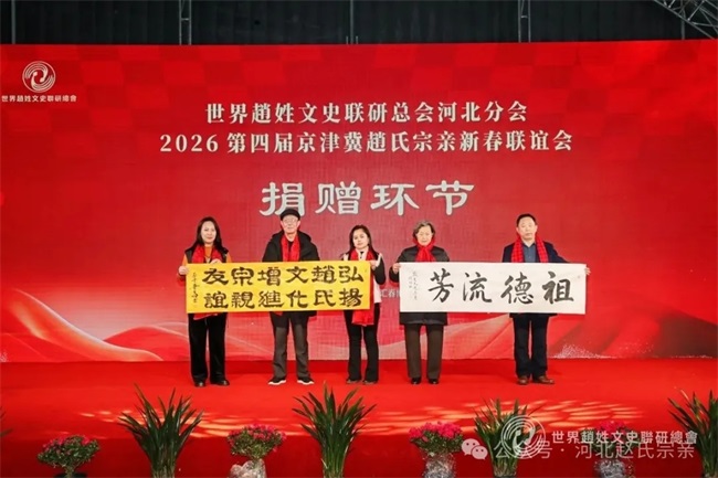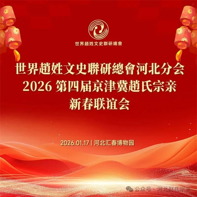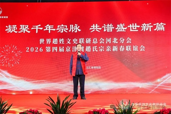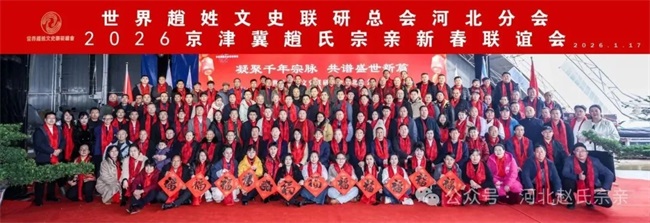 巍巍太行见证血脉深情,滹沱河畔奏响盛世华章。2026年1月17日,伴随着冬日暖阳,以“凝聚千年宗脉 共谱盛世新篇”为主题的第四届京津冀趙氏宗亲新春联谊会,在河北省石家庄市河北汇春博物园隆重举行。这是一场跨越时空的团聚,更是一次心灵的归巢。来自世界趙姓文史联研总会及全国十余个省市的宗亲代表,怀揣着对先祖的敬仰与对家族的热爱,齐聚一堂,共叙血浓于水的亲情,共话文化传承的使命,共绘家族团结与发展的宏伟蓝图。