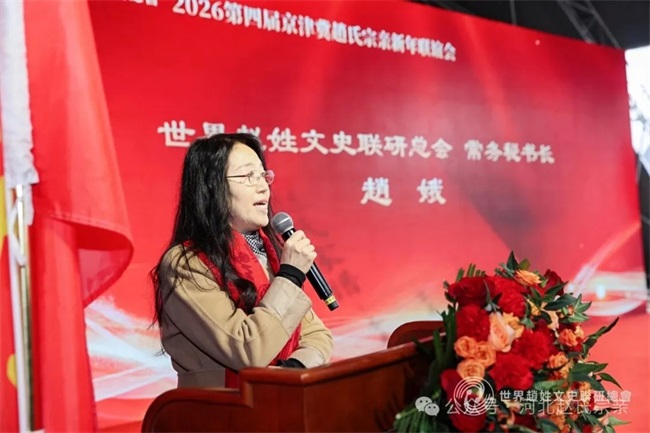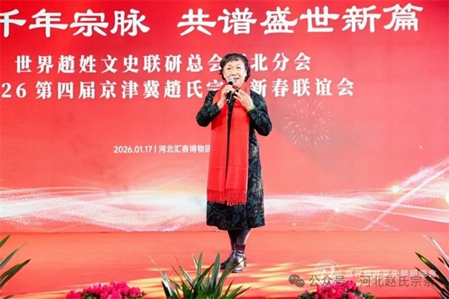 世界趙姓文史联研总会常务秘书长趙娥在讲话中,受创会主席趙明委托,向河北分会全体宗亲转达了趙明主席的深切关怀与热烈祝贺。她代表总会,对京津冀宗亲会过去一年的工作成效给予了高度评价,并就深化家族文化研究、拓展宗亲交流平台、增强社会服务功能等核心议题,提出了前瞻性的战略指导与殷切期望。