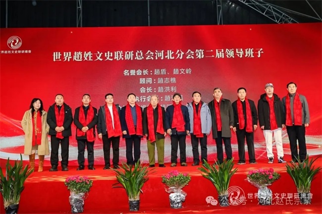 随后,世界趙姓文史联研总会河北分会第二届领导班子和秘书处成员集体登台,与广大宗亲见面。