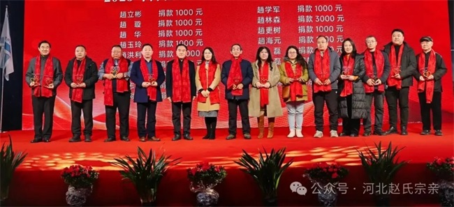 本次联谊会特别设置了隆重的表彰环节,对2025及2026年度为宗亲事业慷慨解囊、捐赠资金与物资的宗亲个人及单位予以隆重表彰。奖杯与证书,不仅是一份荣誉,更是趙氏家族乐善好施、甘于奉献传统美德的生动见证,激励着更多宗亲投身于家族公益事业。