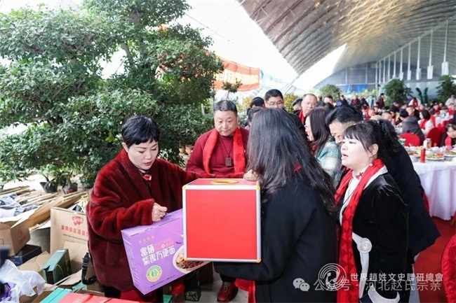 随后,现场举行了温馨的文化礼品传递仪式。来自总会、各分会及多位宗亲个人捐赠的书法珍品、传统画卷、《趙氏祖训》卷轴等实物在现场流转。这些蕴含家族文脉与深厚情谊的赠品,以有形之礼承载无形之情,体现了宗亲之间礼尚往来、共铸精神家园的雅致家风。
