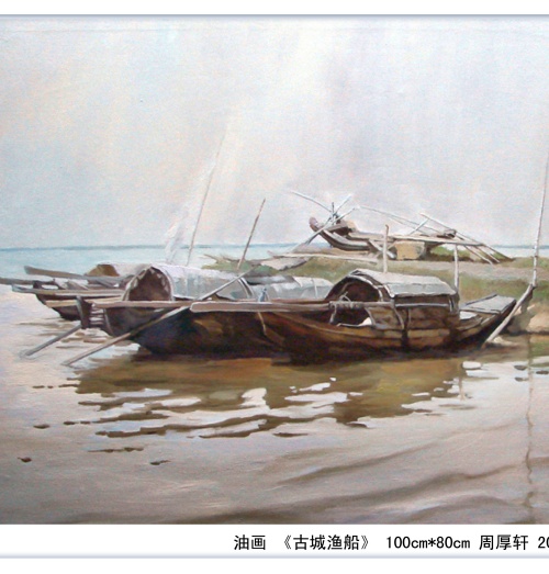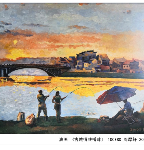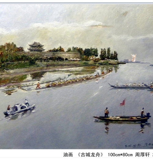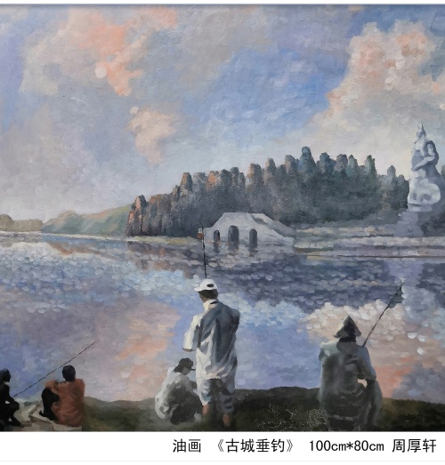 本次画展为荆州李涵艺术馆承办的2026年度首个专展,专展艺术家周厚轩先生是荆襄大地著名的油画家、雕塑家。这位1955年土生土长的荆州沙市人,与绘画结缘于儿时的痴迷,十岁便拿起画笔,在江北农场的岁月里得到启蒙,素描与速写的磨砺为他打下了坚实的根基。青年时期,他曾在讲台上教书育人,却从未放下对油画的热爱。1981年,他考入湖北美术学院,师从尚扬、黄力生等名家,四年的刻苦钻研,让他将西方油画的精湛技法与东方审美的神韵完美融合,形成了自然清新、质朴动人的独特画风。走进周厚轩的艺术世界,你会发现,他的画笔从未离开过荆州。他仿佛一位用色彩记录历史的诗人,将对故土的眷恋倾注于每一幅作品之中。在代表作《古城脚下》中,他以老南门瓮城为背景,巧妙地将拉车的、剃头的、算命的、散步的近四十个人物融入画面,市井烟火气扑面而来,这幅作品也因其生动的叙事性入选了湖北省第十六届楚天群星优秀作品展。他的笔触不仅停留在安宁的街景,更记录了时代的激荡。油画《荆江1998》重现了那场惊心动魄的抗洪岁月,画面中蕴含的家国情怀令人动容;而《长湖渔船》与《古城遗风》系列,则捕捉了水乡的灵秀与民居的静谧,淡彩轻皴间尽显自然之趣。周厚轩始终秉持“眼、脑、心、手”合一的创作理念,使得他的作品构图新颖、意韵悠长,笔墨虽朴素,情感却醇厚如酒。除了架上绘画,周厚轩在雕塑与艺术实践领域同样成就斐然。他以雕塑家的身份,为荆州留下了诸多地标性作品——宾阳楼前的《三国人物》、医馆内的《关公刮骨疗毒》、张居正故居的《张居正像》,这些雕塑不仅重现了历史神韵,凝聚着他对家乡文化的敬意。作为荆州市美协顾问、油画雕塑院院长,周厚轩始终致力于提携后学,推动本土艺术生态的繁荣。2021年,他入选“世界和平艺术家”候选名单,德艺双馨的名声远播。