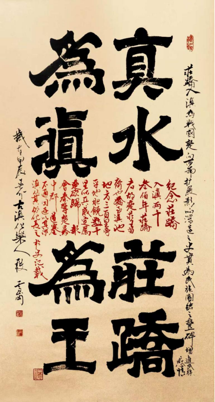 段雪岗深谙“书画同源”,少时练就扎实的书法基本功,使得他具备对笔墨超乎常人的控制力,笔走龙蛇,游刃有余。他线条既有书法运笔的韵律,又融入现代构成意识。在人人追逐新媒介的时代,他坚信毛笔在宣纸上的每一次行走,都是与古老灵魂的重逢;水墨在晕染间的每一瞬变化,都是不可复制的生命体验。这种对传统的坚守与创新,使他的作品既保持了中国书画笔墨的精髓,又具备了当代艺术的鲜活力。他钟爱痴迷并长期研习云南的二爨古碑,并将画室取名为《爨宝堂》文化艺术中心,他在二爨碑中汲取中国书法南碑重器之养分,在十余年的临摹与创作中,系统总结了爨体方笔翘首、古拙遒劲、憨态可掬、坠石嶙峋、结构雄浑的艺术特点,他的爨书作品充分展现军人刚劲有力与正义凛然的特质与洒脱,这种独特的艺术语言成为他个人书法风格的重要标志。