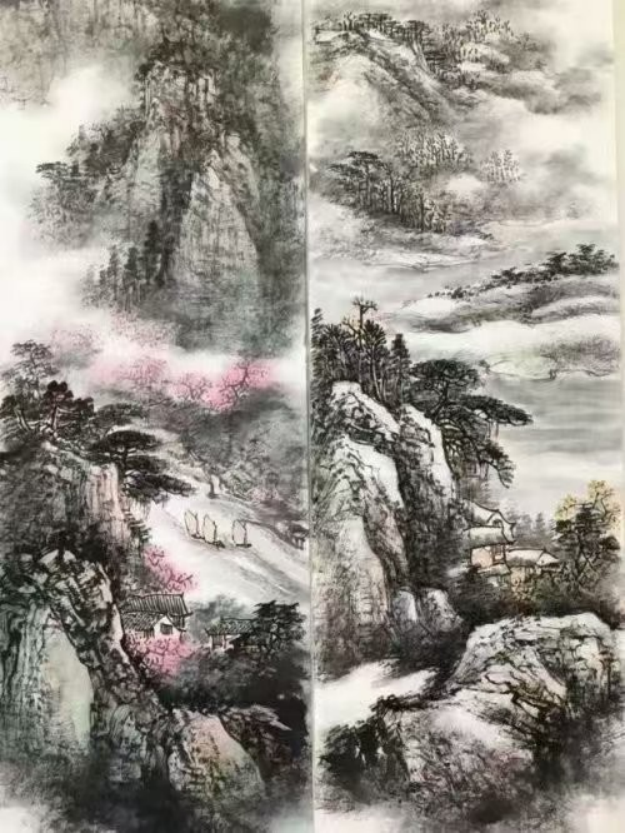 从笔墨技法来看,潘伟的山水画注重传统笔墨的锤炼,以书入画,线条刚柔相济。他的作品常常呈现出徽州山水的独特韵味——峰峦叠嶂间云雾缭绕,溪流潺潺处屋舍俨然,画面既有北派山水的雄浑气势,又具南派山水的秀润清雅。这种刚柔并济的艺术风格,恰如徽州文化的品格——外朴内秀,含蓄深沉。