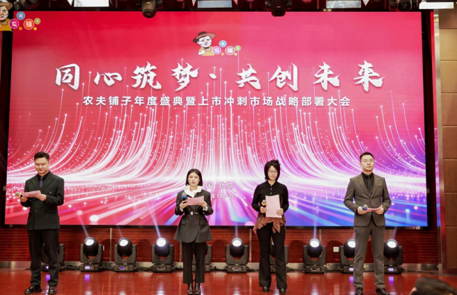 1月9日,以“同心筑梦·共创未来”为主题的农夫铺子年度盛典暨上市冲刺市场战略部署大会在北京市昌平区阳坊大都饭店隆重启幕!这不仅是一场汇聚光荣与梦想的年度盛会,也是一次凝聚共识的关键集结。大会通过回顾征程、表彰先进、部署未来等核心环节,串联起过去一年的奋斗足迹与新一年的出征号角。在分享中凝聚共识,在掌声中见证荣耀,在规划中明晰方向——全体农夫铺子人将以此次盛会为崭新起点,同心协力,全速冲刺上市目标!