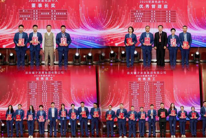 荣誉照耀来时路,星光指引新征程。会议隆重举行了2025年度先进个人颁奖仪式,优秀董事长奖、卓越管理层与杰出员工代表依次登台。这一荣耀时刻,既是对杰出贡献者的崇高致敬,更是对集团奋斗精神的集体礼赞。这份肯定必将凝聚成更深厚的前行力量,激励全体农夫人在新的一年里继续携手并肩,在奔赴未来的道路上共同谱写更加辉煌的篇章。