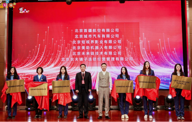 本次揭牌仪式上,北京首疆航空、北京城市汽车、北京短视界影业、北京美助机器人、北京未来链技术、北京农夫铺子连锁经营管理等多家公司正式成立,集团董事长袁道红与副董事长李林祥共同为上述公司揭牌,现场掌声热烈,标志着农夫铺子多元产业生态正式迈入体系化运营新阶段。袁道红进一步表示,农夫铺子在人工智能领域已明确两大核心方向:自主研发的专用模型“通问智脑”与聚焦康养服务的养老机器人系列。这两大布局共同构成集团推动数字技术与实体经济深度融合、构建可持续竞争力的重要支柱。