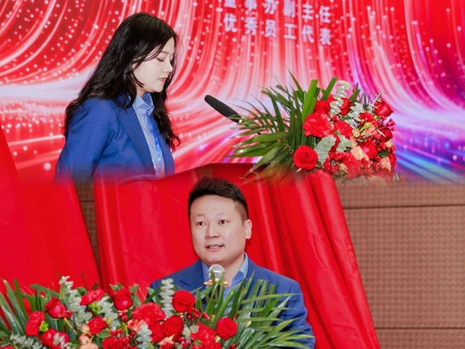 优秀员工获奖代表刘妍发言表示,董事办始终是集团意志的坚定执行者、高效运转的保障者,也是董事长与各部门之间的关键桥梁。新的一年,董事办将持续提升服务效能,同心奋进,助力集团再创辉煌。董事长奖获奖代表田野在发言中感谢了集团领航者与全体战友,强调正是战略指引、跨部门协同与一线实干,共同推动了从无到有的实体成果。这份星火汇聚的荣耀,生动诠释了集团“四共”理念,也为加速上市进程奠定了坚实基础。
