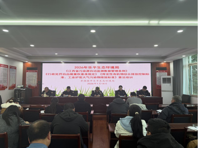 新年伊始,为进一步强化污染源自动监测数据管理,提升企业环保主体责任意识,规范第三方运维服务,景德镇市乐平生态环境局组织召开了《江西省污染源自动监测数据管理条例》及《挥发性有机物综合排放控制标准》《工业炉窑大气污染物排放标准》等法规标准专题普法培训。