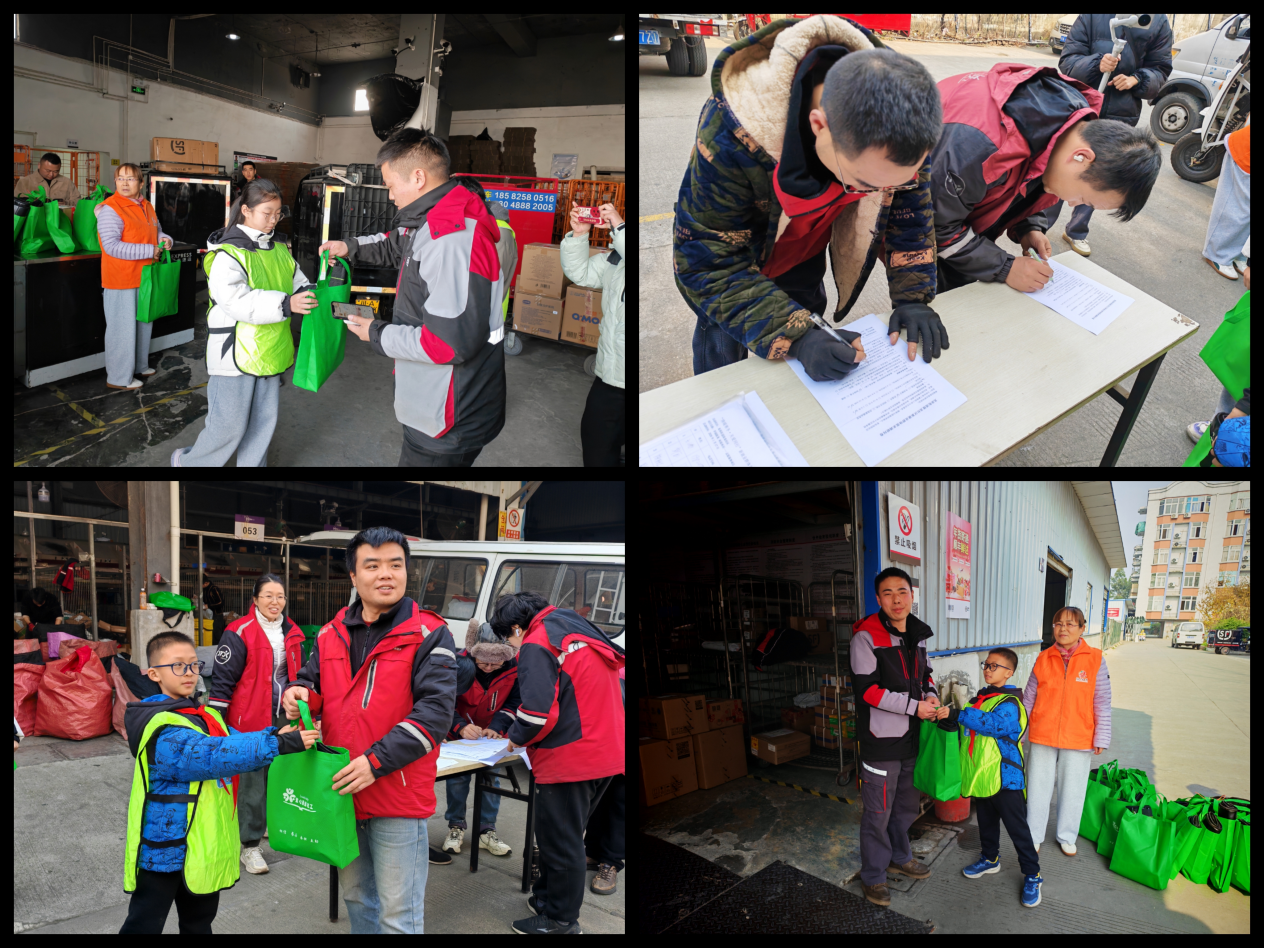 近日,社区联合龙宝嬢嬢志愿服务队、龙宝绿行者,共同开展“情暖寒冬·关爱同行”冬季送温暖活动。志愿者们不仅深入辖区3个快递网点,为坚守岗位的快递小哥送上这份满载心意的定制暖心物资,还走进社区暖心驿站,为奔波的外卖员、环卫工人也送上暖心包。活动现场更通过问卷填写的方式倾听“新”声,精准收集需求,让这个寒冬充满温情。冬季气温骤降,寒风凛冽,快递员、外卖员每天穿梭于大街小巷,环卫工人坚守在城市保洁一线,他们用辛劳为社区居民的日常生活提供便捷、守护城市洁净。其中快递员、外卖员长期在户外奔波,不仅面临腿部受寒的困扰,工作环境易产生异味等问题也时刻影响着身心健康;环卫工人户外作业时间长,御寒需求同样迫切。此次送温暖活动,正是社区串联起未成年人实践教育与志愿关爱服务,精准对接一线劳动者需求的暖心。