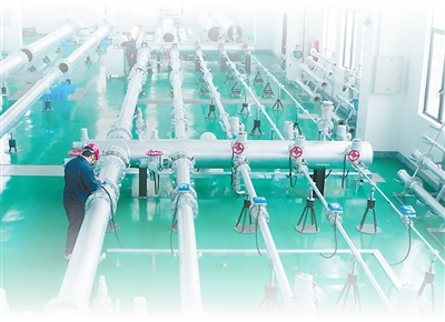 江苏神通的技术人员正在调试阀门流量流阻特性试验装置。江苏神通阀门股份有限公司供图