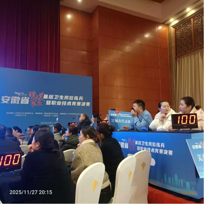 “这次我们代表芜湖市参加竞赛,全市唯一。”据领队的繁昌区孙村镇中心卫生院副主任医师、党支部副书记、内科主任张任制介绍,本次竞赛围绕家庭医生团队核心能力展开,全面考核常见病诊疗、急症应急处置、慢性病规范管理以及多岗位协同协作等内容,是对基层卫生服务机构综合能力的一次高标准检验。孙村医院高度重视此次赛事,赛前精心选拔业务骨干,开展系统性强化训练,着力提升团队实战能力。比赛中,队员们沉着冷静、操作规范、配合流畅,以精湛的技术和昂扬的风貌,赢得了评委的充分肯定。