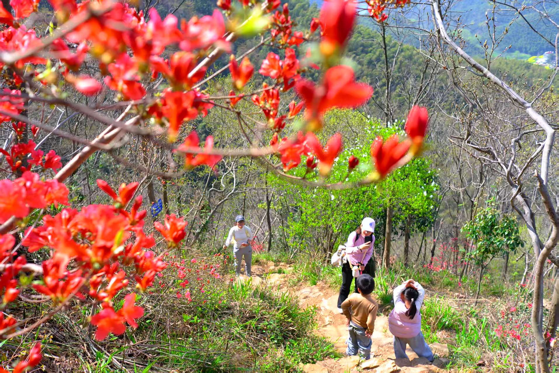 3月29日,正逢春山如笑,游客们登临红花山,或漫步花丛,或驻足远眺,在映山红的簇拥中,感受山水之美,也在这片红色土地上,默默追忆那段峥嵘岁月。