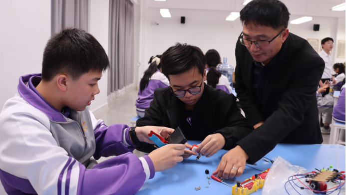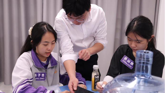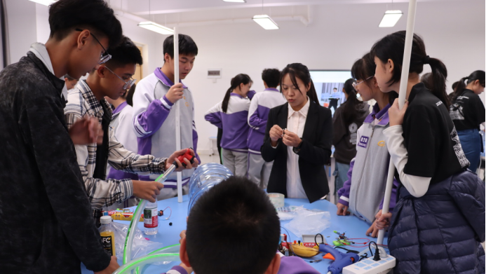 王禧龙、田方用、郑洪坤、俞雪芬四位老师,共同带领学生步入一段奇妙的物理探索之旅。激光划出优雅的光弧,追逐水流的踪迹;乒乓球在气流托举下翩然悬浮;特斯拉线圈无声放电,点亮了满堂的惊叹……掌声与欢呼交织间,科学的种子在趣味中发芽,合作的愉悦在心桥间共鸣。