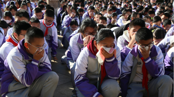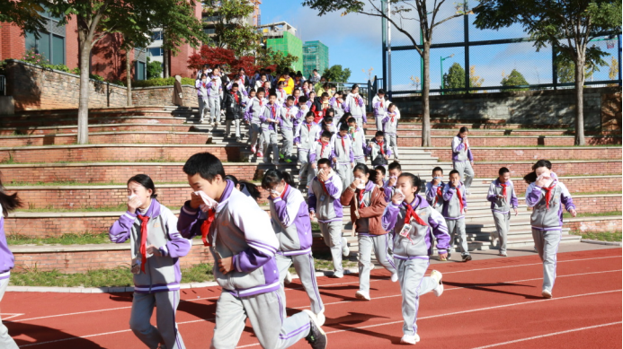 期间,师生们迅速向开阔的升旗广场集中,队伍整齐,行动一致。班主任立即清点本班人数,并快速、准确地将情况汇总上报至指挥组,确保每一位学生的安全得以确认。