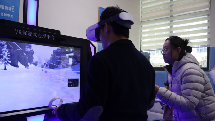 考察团深度体验初中部学生成长指导中心的VR技术