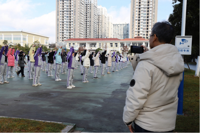 上午,在安宁中学副校长朱宏清、团委书记吴蝶的陪同下,高中部考察团成员步入本部高中校园,先后参观了校史馆及校园环境,初步感受学校的文化底蕴与育人氛围。期间,考察团还观看了学生集体演练的“八段锦”,整齐的动作与浓厚的传统文化氛围,生动展现了学校对学生身心健康的重视,给来访教师留下了深刻印象。