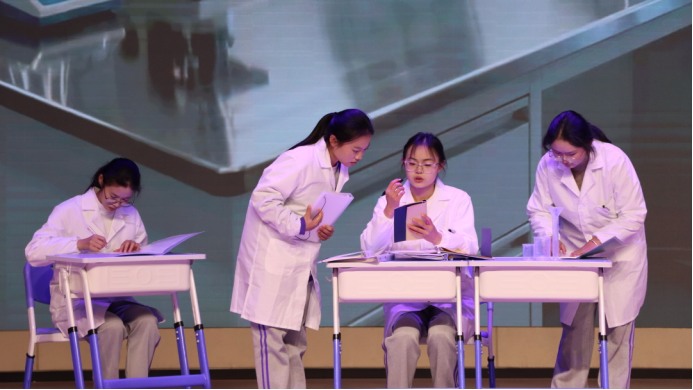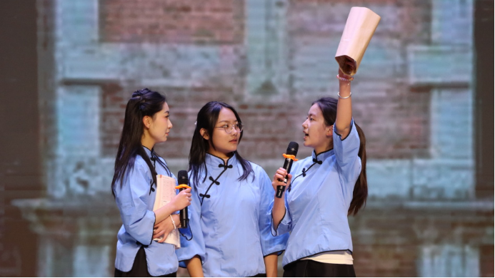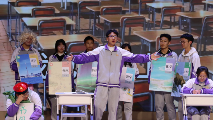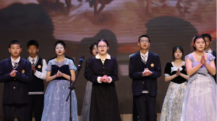 心怀家国,目有山河。从意蕴悠长的情景小品到婉转激昂的合唱欢歌,学子们以艺术为载体,回望百年征程,礼赞盛世华章。小品中,他们以鲜活角色复刻岁月荣光,用真挚演技传递赤子之心。