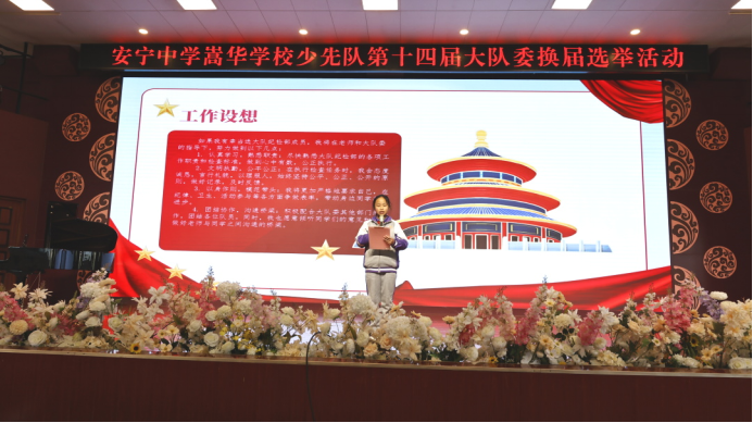 经过个人能力展示环节的考核,成功晋级的候选人展开了激烈的岗位竞聘宣讲。他们从容自信,条理清晰地阐述各自的工作设想:从如何贴心服务同学、全力助力校园活动开展,到怎样深耕少先队优良传统、创新大队部工作形式,每一份规划都饱含着对岗位的敬畏与责任,生动展现了新时代少先队员勇挑重担、乐于奉献的青春担当。