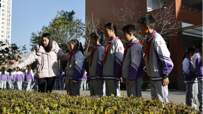 心有榜样,行有力量。为助力大队委们快速进入履职状态,大队辅导员带领大家走进校园各个场域,从大课间活动的有序督导、校园环境的细节维护,到食堂就餐秩序的规范引导,进行了全方位、实操性的现场指导。为新一届大队委明确工作方向、理清履职思路。