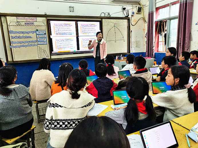 闰光小学的英语老师方超讲授六年级英语《Unit 3 My weekend plan part B Let’s learn》,她创设了一个真实的情境展开教学,营造良好的语言环境,整节课都与学生用英语沟通,她还请学生上台展示,鼓励学生参与到课堂中来。两位老师都利用AI融合大单元教学设计,将课堂教学与实操能力提升相结合。