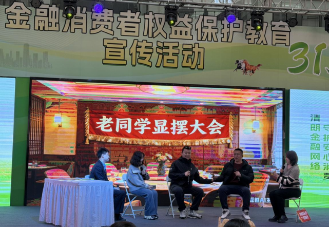 活动现场,华夏银行呼和浩特分行精心编排的小品《老同学显摆大会》吸引了众多观众。在这部小品中,老友们相聚时的欢乐场景因“高息理财”和“内部渠道”的炫耀而变得紧张,上演了一场从“显摆”到“警醒”的戏剧化转变。节目以幽默诙谐的形式,生动地展示了日常生活中常见的金融消费场景,巧妙地将防范非法集资、识别金融诈骗、理性投资理财等专业知识融入剧情。演员们以生动接地气的语言和夸张的表演,让市民在轻松愉快的氛围中掌握了金融知识,现场掌声此起彼伏,气氛热烈。