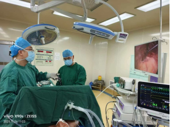 图1:王俊刚主任(左一)团队在武川县医院手术室进行手术。