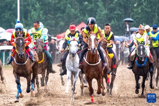 这是8月8日在2025兴安盟那达慕上拍摄的速度赛马比赛。