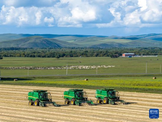 近日,位于内蒙古呼伦贝尔市额尔古纳市的呼伦贝尔农垦拉布大林农场19.22万亩小麦迎来丰收季,当地农民抢抓农时,以大规模机械化的方式开展收割、晾晒作业。