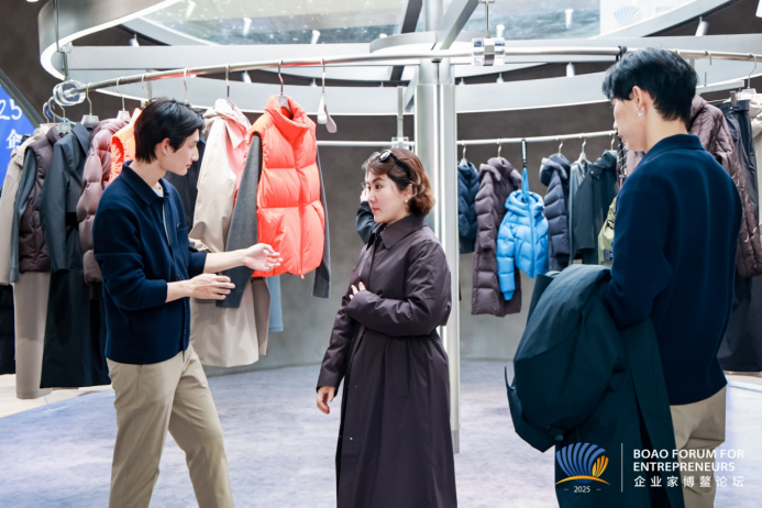 作为论坛的“老朋友”与中国羽绒服行业的领军者,今年波司登不仅携新质生产力实践成果参与主论坛核心议题探讨,更将融合时尚美学与现代科技的波司登高级产品线AREAL快闪店搬至现场,以时尚功能科技基因打造沉浸式文化体验空间,以匠心演绎品质,用科技赋能时尚,在南海之滨开启了一场兼具温度与风度的“美学之旅”。