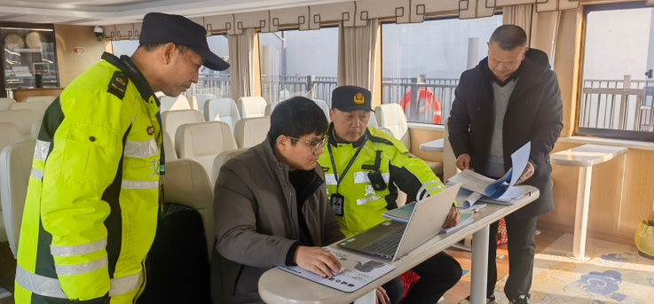 该支队还组织船检大队验船师和水上大队安检员联合对景区游览船和新洋港樱花号、天妃号游船进行全面安检,认真检查航行设备、智能设备、信号设备、消防救生设备、报警设备、逃生通道及船员履职情况,全覆盖检查,不留死角,一船一档,发现安全隐患轻微的,立即整改,存在严重安全隐患的,限期整改,复查合格后,才能经营,以保障群众春运春节期间水上出行安心、放心。