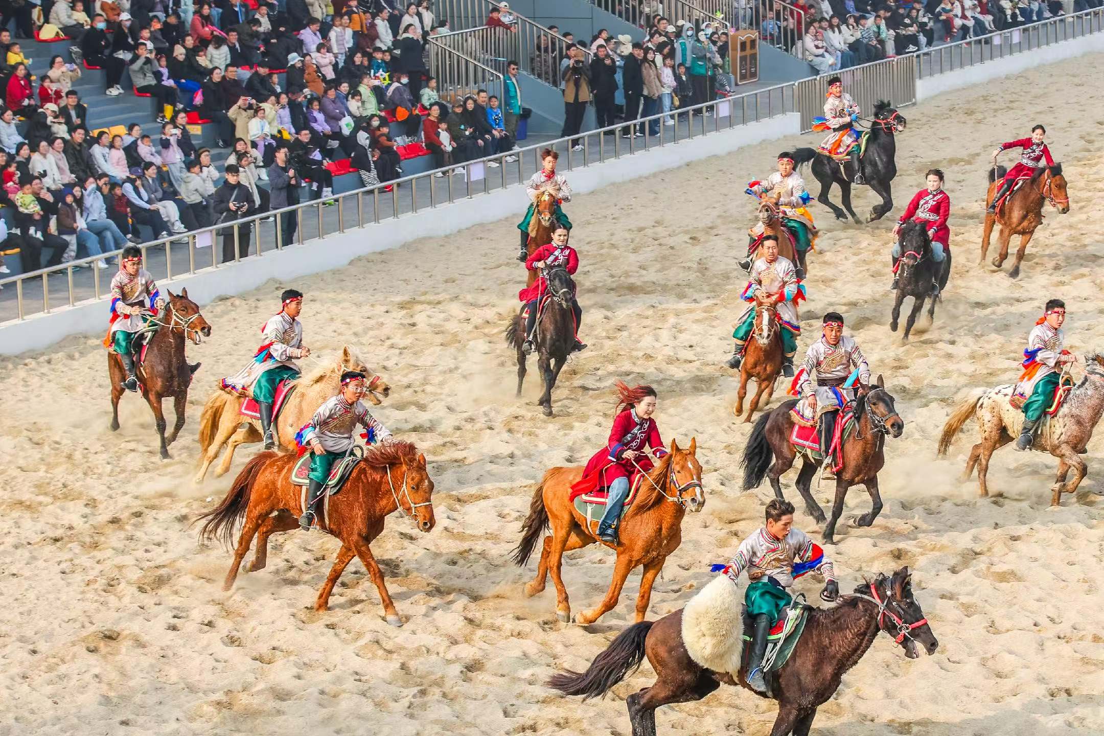“太震撼了!从来没想过在宿迁能看到这么原汁原味的草原表演,特别是最后万马奔腾的时候,真的被那种气势震撼到了,那一瞬间就值回票价了。”来自徐州的游客张先生激动地说。3月21日,江苏森迪文旅倾情打造的苏北地区首个百马实景秀《万马奔腾》在宿迁森迪野生动物世界正式首演。数百匹骏马奔驰而出,骑手在马背上翻腾射箭,原汁原味的内蒙大草原风情让现场观众掌声不断、惊呼连连。