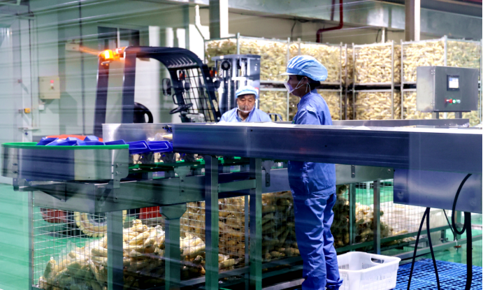 黄海农场响垦臻品科技有限公司技术负责人朱松介绍,“我们加工厂离我们生产基地只有两公里左右,达到一小时锁鲜,运到加工厂以后,我们的工人早就在这边等着,采用气吹式扒皮机、高温蒸煮,再通过真空包装进入杀菌釜进行杀菌,我们还采用分级机进行分级,保证鲜食玉米到每个客户的手中,它的大小、它的品相都是一致的。”