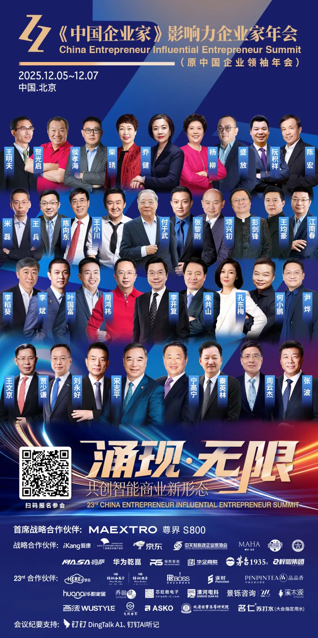 12月5日~7日,由《中国企业家》杂志社主办,携手首席战略合作伙伴尊界共同呈现的“2025(第二十三届)《中国企业家》影响力企业家年会”(原中国企业领袖年会),将在北京国贸大酒店举行。这场中国商界的年度盛会已连续举办二十三载,此次将以全新的主题“涌现·无限——共创智能商业新形态”亮相,与时代最强音同频共振。