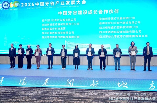 2026年是"中国牙谷"建设十周年。大会现场,为表彰对产业发展作出突出贡献的实体企业,资阳高新技术产业园区管理委员会向四川正美颁发了"中国牙谷建设成长合作伙伴"证书,表彰四川正美高速增长的业绩、智能化生产水平以及对当地产业链的带动作用。