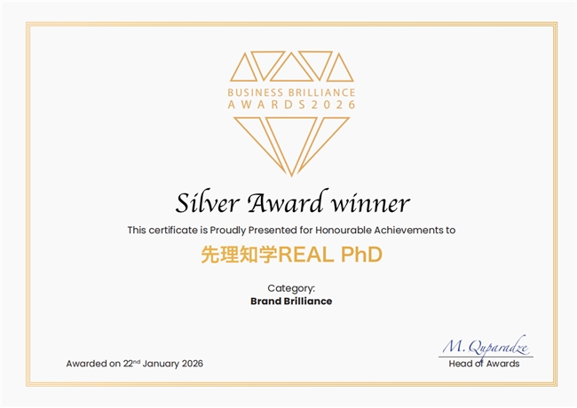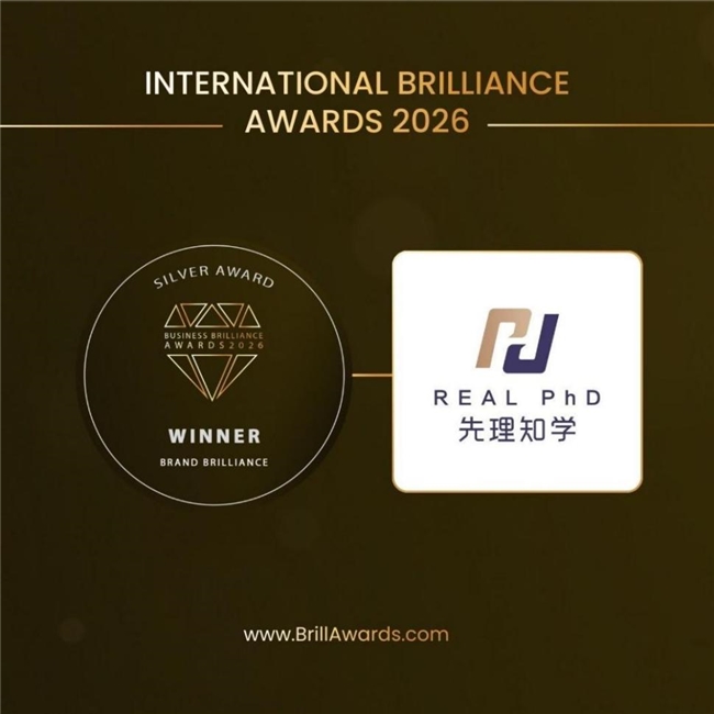 近日,国际权威奖项International Brilliance Awards公布年度获奖结果。一站式海外博士申请服务品牌——先理知学REAL PhD(简称“先知”)凭借卓越的综合实力,成功荣获 International Brilliance Awards - Business Brilliance Awards 2026 中的 Brand Brilliance Silver Award,并获评审委员会高度评价:“This is a brand that does things the right way. Strong academic standards, clear values, and a real sense of care for the people it serves.”(“先理知学REAL PhD,坚守专业高度,践行清晰价值观,以真诚关怀托举每一位学子申博梦。”)